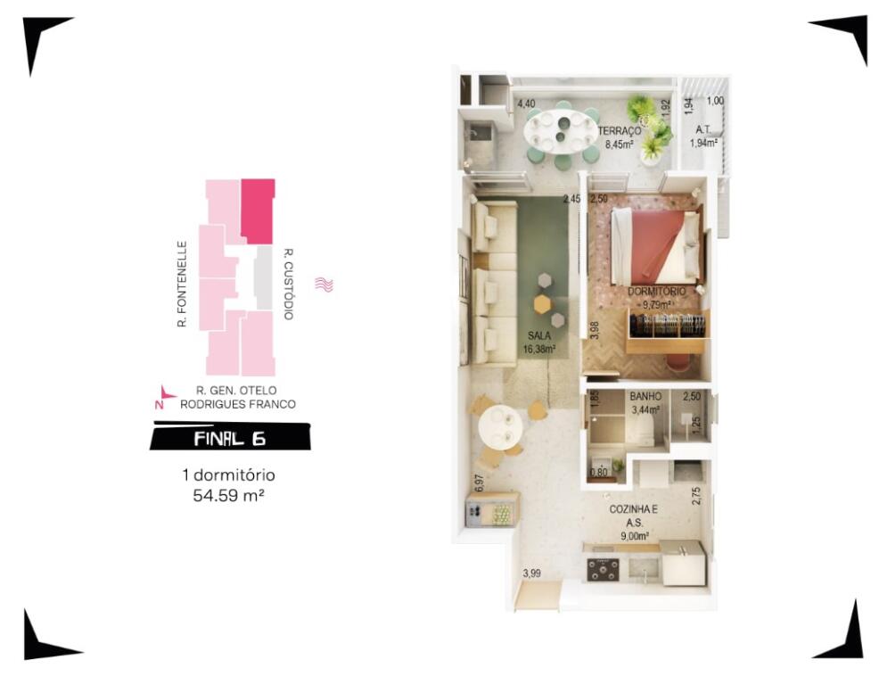 Área Útil54,59m²